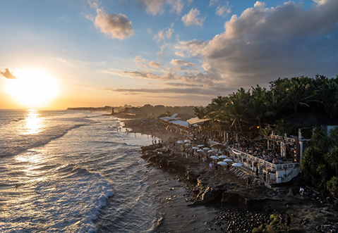 La Brisa is one of Bali’s most iconic beachfront destinations. Nestled on Echo Beach in Canggu, it offers a bohemian atmosphere with rustic décor, palm-fringed pools, and ocean views that set the perfect scene for sunset. Guests can enjoy fresh seafood, signature cocktails, and a lively yet relaxed vibe—making it an ideal spot for an afternoon escape or a night out by the sea.