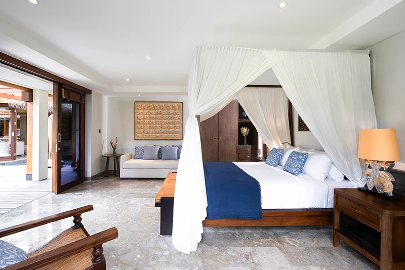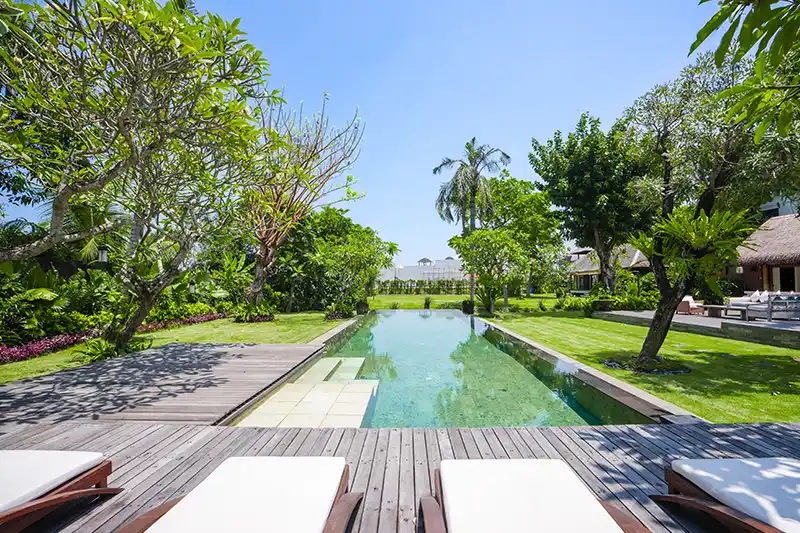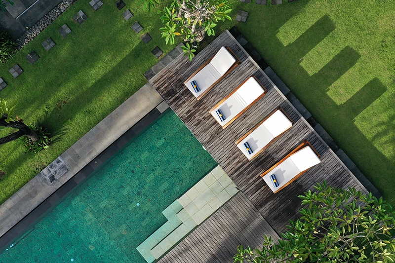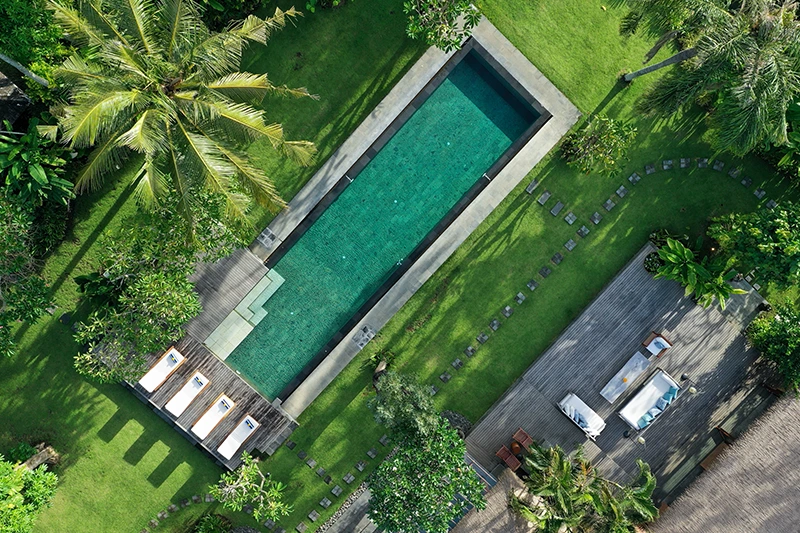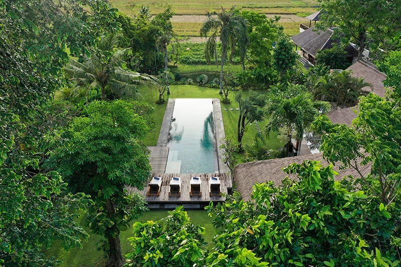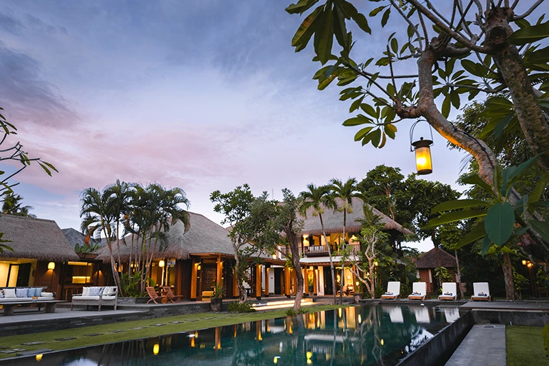 This fully staffed villa offers five large bedroom suites and generous indoor and outdoor living areas alongside a stunning 17-metre infinity pool perfect for extended three-generation families or a few families holidaying together. Enjoy sweeping rice-field vistas towards the sea, and a ringside seat for Balis fabled sunsets from the sea-view rooftop terrace.